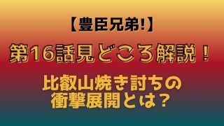 豊臣兄弟 第16話の見どころ解析をわかりやすく解説!比叡山焼き討ちの衝撃展開や宮部調略、義昭の和睦の裏側まで整理しています。光秀や藤吉郎の葛藤、信長の決断など注目ポイントを事前にチェックして、第16話をより深く楽しみたい人におすすめの記事です。